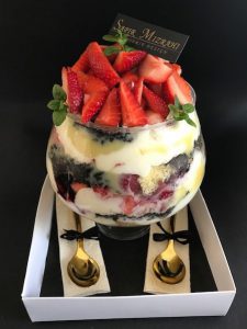 מארז טרייפל זוגי משגע – שכבות מפנקות של עוגת סברינה, קרם אנגלז, עוגיות, פירות יער, גנאש שוקולד לבן והמון תותים טריים.
